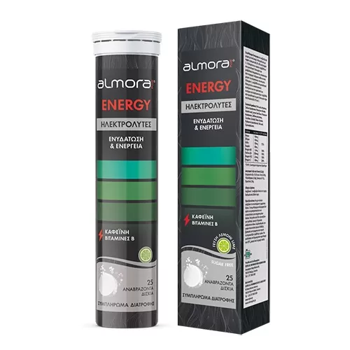 To almora ENERGY είναι συμπλήρωμα διατροφής σε αναβράζουσα μορφή με συνδυασμό Ηλεκτρολυτών (Na, Cl, K), Βιταμινών του συμπλέγματος B (Β6, Β9, Β12), καφεΐνης και Βιταμίνης C.