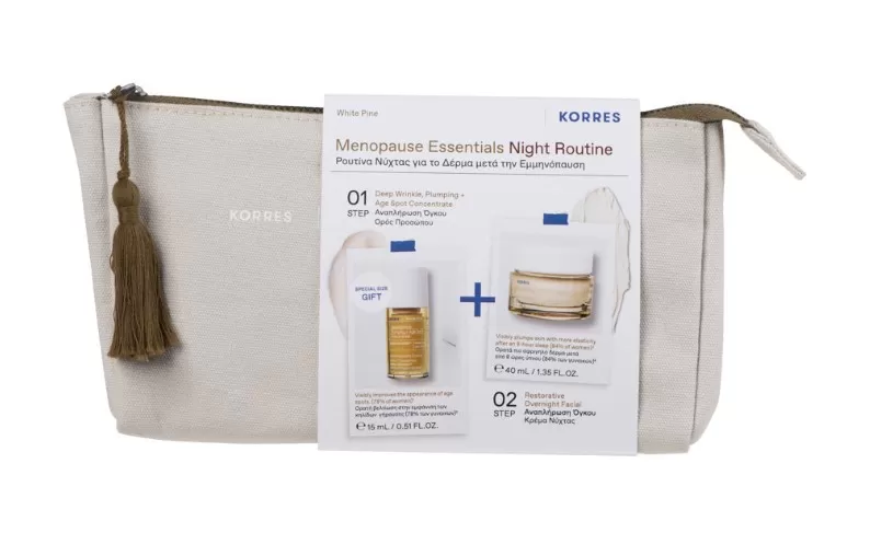 Korres White Pine Menopause Essentials Σετ Περιποίησης για Αντιγήρανση με Κρέμα Προσώπου , Serum & Νεσεσέρ Night Routine