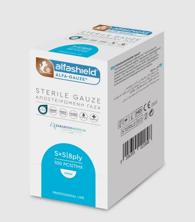 Οι αποστειρωμένες γάζες Alfashield | ALFA-GAUZE κατασκευάζονται από 100% άριστης ποιότητας βαμβάκι για μέγιστη ασφάλεια και προστασία.